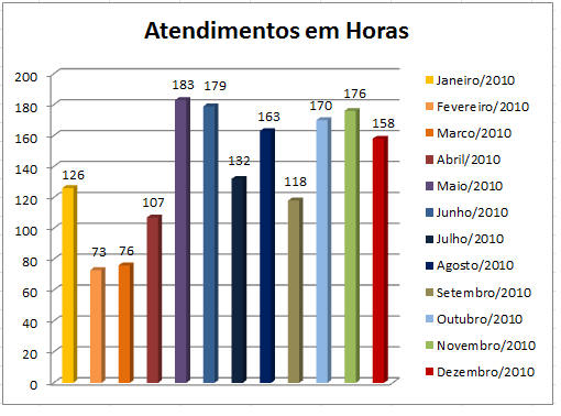 Número de Atendimentos em Horas – Janeiro a Dezembro de 2010