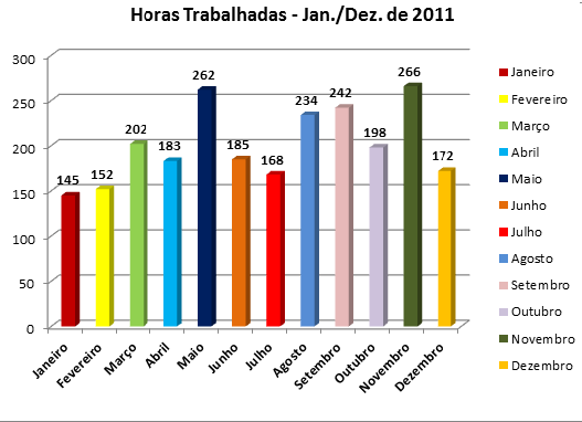 Número de Atendimentos em Horas – Janeiro a Dezembro de 2011